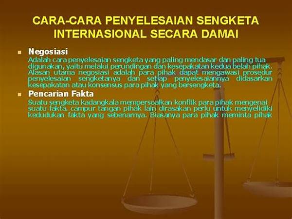 Bro, lo tau gak sih, kalo sekarang tuh dunia makin panas. Banyak konflik yang kerap terjadi, dari masalah kecil sampe yang gedhe-gedhe. Dalam situasi kayak gitu, penyelesaian sengketa secara damai jadi andalan. Bayangin aja, kalo semua ngotot dan keras, bisa-bisa bakal tambah runyam, bro! Dengan cara damai, kita bisa dapetin win-win solution yang bikin semua pihak happy. Jadi, gak ada yang rugi dan pastinya hubungan juga makin solid. Selain itu, penyelesaian sengketa secara damai bisa ngurangin potensi konflik jangka panjang, lho. Intinya, sekecil apapun masalahnya, lebih baik diselesaikan dengan kepala dingin.